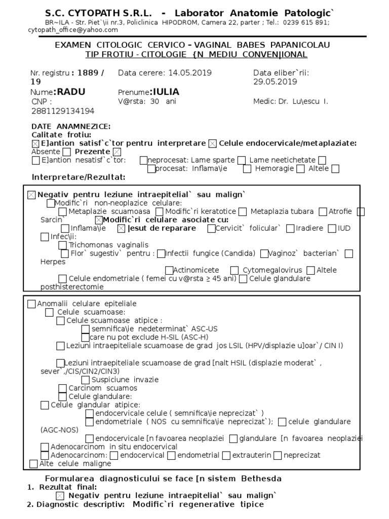 Frotiu Negativ Pentru Leziune Intraepiteliala Sau Maligna