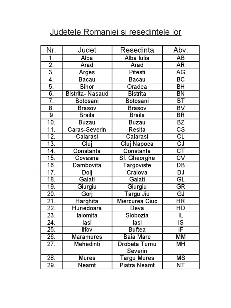 Istoria Romaniei Istorie Universala Judetele Romaniei Si Resedintele De Judet Harta Text