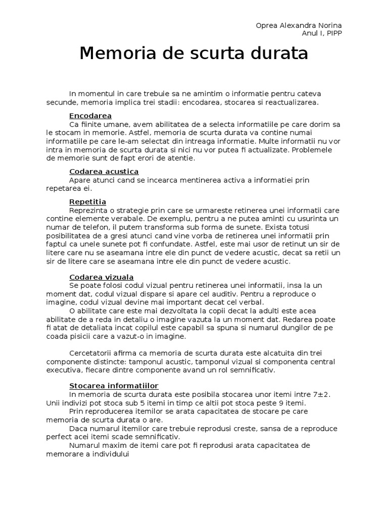 Memoria De Scurtă Durată Este Memorie De Lucru