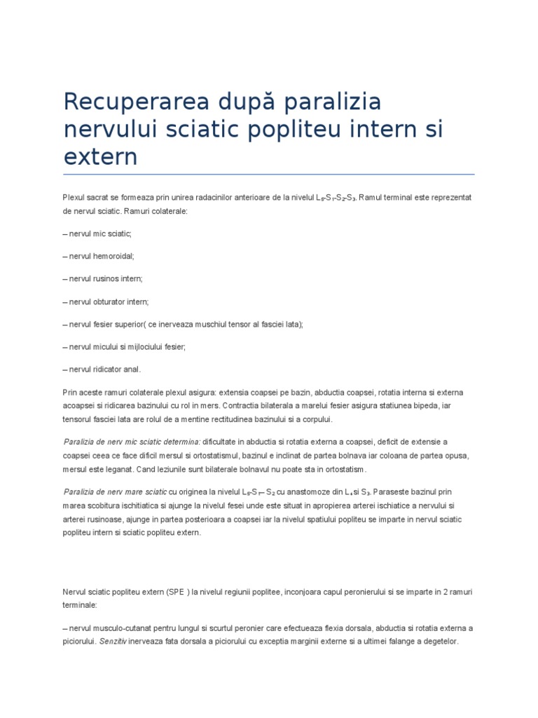 Recuperarea După Paralizia Nervului Sciatic Popliteu Intern Si Extern