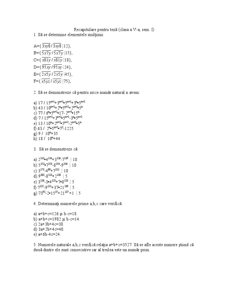 Divizibilitate Teste Matematica Clasa 5 Teza