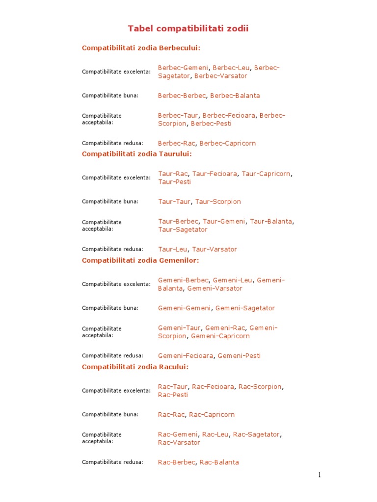 Tabel Compatibilitati Zodii